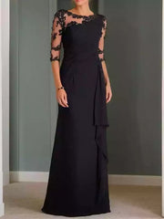 3/4 Sleeves Floor-Length Sheath Chiffon Applique Scoop Mother of the Bride Dresses