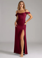 Alluring Sheath Cowl Neck Cold Shoulder Criss Cross Back Bridesmaid Dress occasion: Bridal showers Red carpet events Upscale parties Masquerade balls Formal corporate events White tie events Female guests