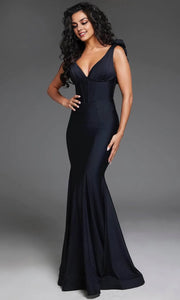 floor-length mermaid prom dress combines sophistication with modern style. Featuring a flattering V-neck and a sleeveless, 3D Floral Appliqued, Open Back, off-the-shoulder design, it accentuates the shoulders and neckline while creating an elegant silhouette. Its fitted mermaid cut enhances your natural curves, making it ideal for formal occasions. Crafted for women seeking timeless grace, this dress offers both comfort and a striking presence at any special event.