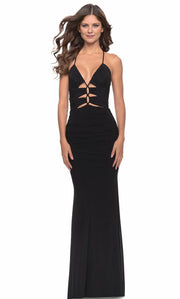floor-length sheath dress features a stylish V-neck and sleeveless design, Open Lace Up Back stylish cut out down the neckline creating an elegant silhouette ideal for prom or formal events. Its trendy cut enhances your natural shape while offering comfort and sophistication throughout the evening. Perfect for women seeking timeless fashion with a modern edge.