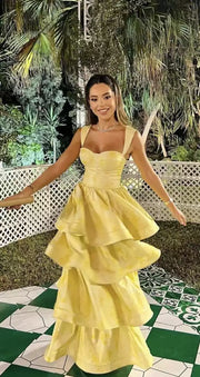 This vintage-inspired yellow princess dress combines timeless elegance with modern fashion, perfect for prom or evening parties. Crafted to flatter the female silhouette, its classic design and vibrant color make it an exquisite choice for special occasions. The dress offers a sophisticated look that enhances your presence with grace and style.
