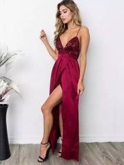 A-Line Sleeveless Straps Floor-Length Sequin Chiffon Dresses Bridesmaid Dresses - US 2 / UK 6 / EU 32