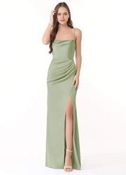 Alluring Sheath Cowl Neck Spaghetti Strap Cut Out Back Floor Length Bridesmaid Dress