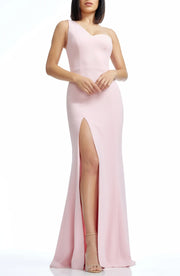 This alluring dress features a sheath silhouette, offering a sleek and body hugging look. The one shoulder neckline exudes a sense of unique charm, while the sleeveless design adds a touch of elegance. The zipper back detail brings a practical and stylish element, and the floor length skirt creates a truly alluring and unforgettable style, perfect for bridesmaid duties.