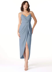 Alluring Sheath V Neck Spaghetti Strap Crisscross Back Bridesmaid Dress occasion: Bridal showers Red carpet events Upscale parties Masquerade balls Formal corporate events White tie events Female guests