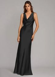 This breathtaking dress features a sheath silhouette, offering a sleek and body hugging look. The cowl neckline exudes luxurious charm, while the sleeveless design adds a touch of modern elegance. The criss cross back detail brings a stylish and alluring element, and the floor length skirt creates a truly breathtaking and unforgettable style, perfect for bridesmaid duties.