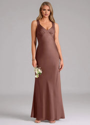Charming Sheath V Neck Sleeveless Criss Cross Back Floor Length Bridesmaid Dress - US 2 / UK 6 / EU 32