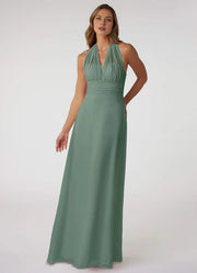 Dreamy A Line Halter Neck Sleeveless Bow Back Floor Length Bridesmaid Dress