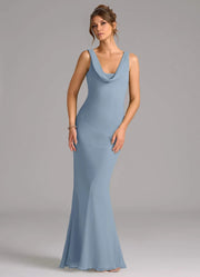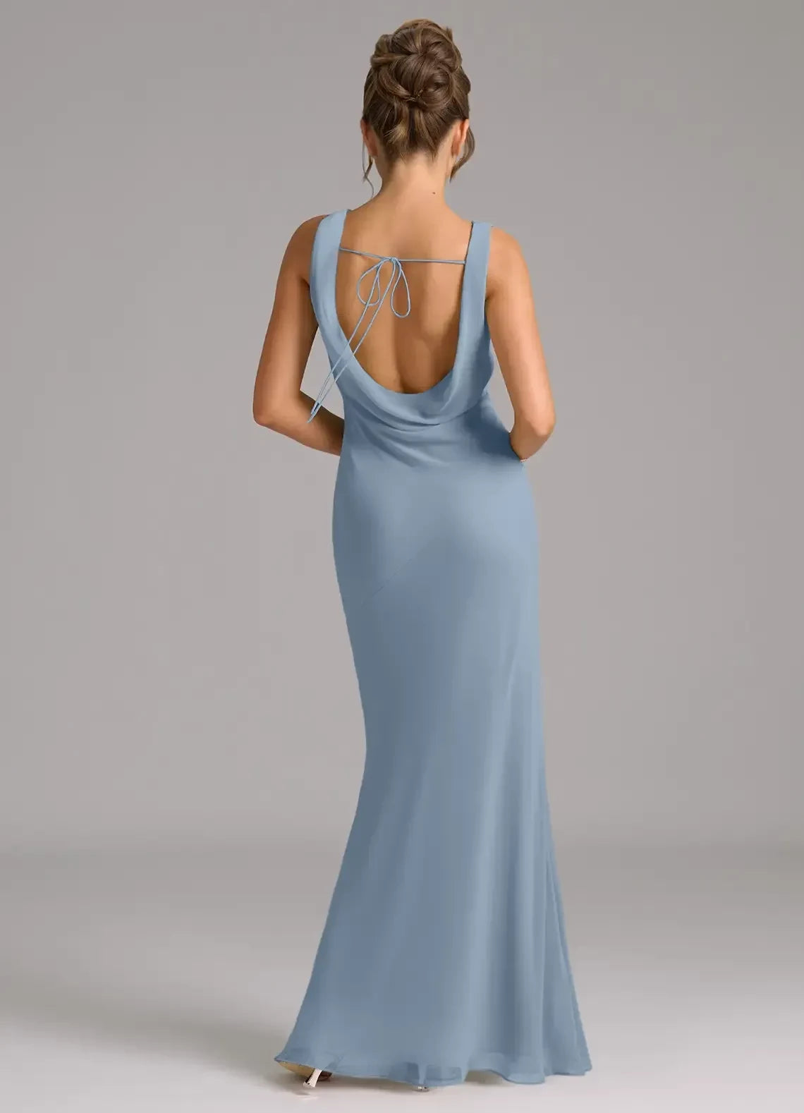 Elegant Sheath Cowl Neck Sleeveless Tie Back Floor Length Bridesmaid Dress