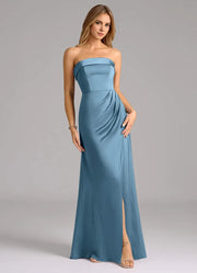 Elegant Sheath Strapless Sleeveless Zipper Back Floor Length Bridesmaid Dress