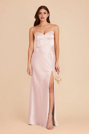 This elegant dress features a sheath silhouette, offering a sleek and body hugging look. The sweetheart neckline exudes a sense of romantic charm, while the spaghetti straps add a touch of delicacy. The smocked back detail brings a stylish and comfortable element, and the floor length skirt creates a truly elegant and unforgettable style, perfect for bridesmaid duties.