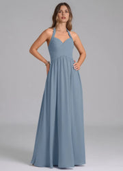 Graceful A Line Halter Neck Sleeveless Zip Back Floor Length Bridesmaid Dress - US 2 / UK 6 / EU 32