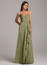 Graceful A Line Sweetheart Neck Spaghetti Strap Criss Cross Back Floor Length Bridesmaid Dress - US 2 / UK 6 / EU 32