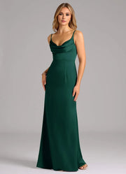 Graceful Sheath Cowl Neck Spaghetti Strap Open Back Floor Length Bridesmaid Dress
