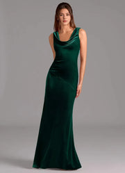 Magical Sheath Cowl Neck Sleeveless Tie Back Floor Length Bridesmaid Dress