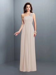 One-Shoulder Sleeveless champagne Chiffon Floor-Length With Hand-Made Flower Bridesmaid Dresses