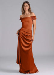 Romantic Sheath Off Shoulder Ruffled Sleeve Zip Back Floor Length Bridesmaid Dress