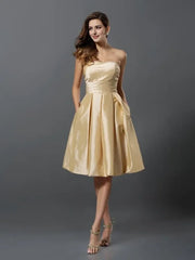 Sleeveless Taffeta Strapless Knee-Length With Ruffles Bridesmaid Dresses