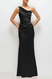 This stylish dress features a mermaid silhouette, hugging the body beautifully to show off curves. The one shoulder neckline gives a unique and chic vibe, with sleeveless design adding a touch of elegance. The open back detail brings a stylish and alluring element, and the floor length skirt creates a truly stylish and unforgettable look, perfect for bridesmaid duties.