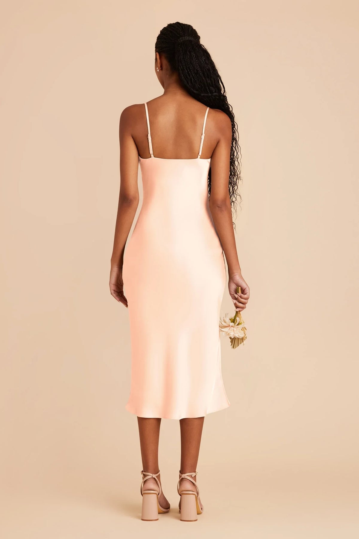 Sweet Sheath Cowl Neck Spaghetti Strap Zip Back Midi Length Bridesmaid Dress
