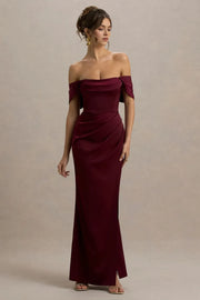 This dress features a captivating mermaid silhouette with an off-shoulder design, draped sleeves, and a ruched side that offer a sophisticated and fashionable look. The floor-length cut adds a touch of elegance, making it perfect for evening events, ensuring you look stylish and confident.