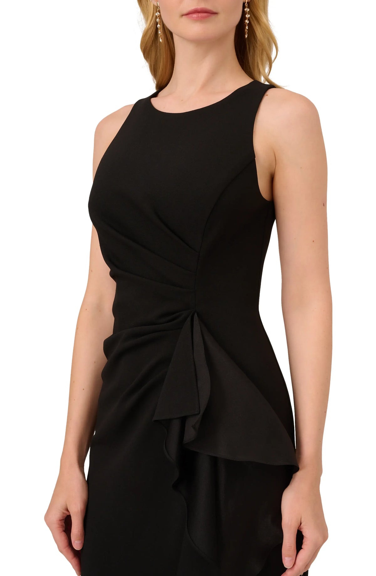 This charming dress features a mermaid silhouette, hugging the body to highlight curves and flaring out at the bottom for a dramatic effect. The crew neck design brings a classic and timeless charm. With a sleeveless cut, it adds a touch of allure. The keyhole back detail creates a stylish and alluring look, and the floor length skirt makes for a truly charming and unforgettable appearance, perfect for evening events.