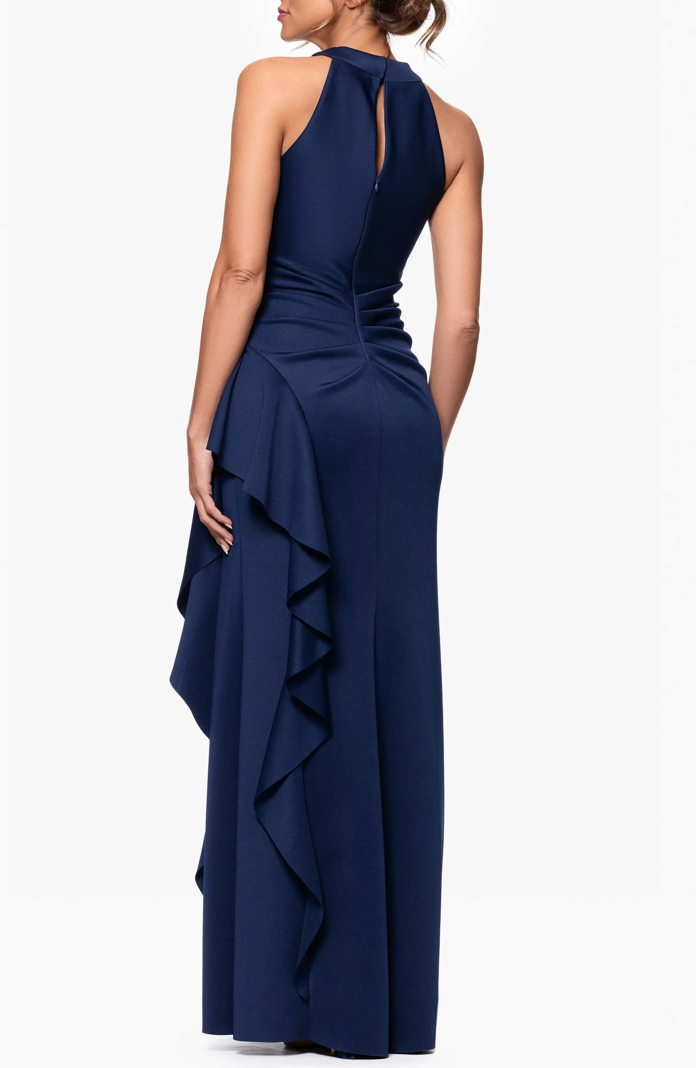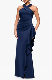 Charming Sheath Cross Halter Neck Sleeveless Keyhole Back Floor Length Evening Dress - US 2 / UK 6 / EU 32