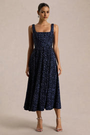 This dress features a chic A-line silhouette with a square neck, sleeveless design, and a zip-back that offer a sophisticated and stylish look. The midi-length cut adds a touch of elegance, making it perfect for evening events, ensuring you look stylish and confident.