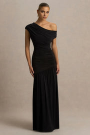 Chic Mermaid One Shoulder Draped Sleeve Ruched Side Floor Length Evening Dress - US 2 / UK 6 / EU 32