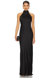 This dress features a chic sheath silhouette with a halter neck, sleeveless style, and a tie-back that offer a sophisticated and fashionable look. The floor-length cut adds a touch of elegance, making it perfect for evening events, ensuring you look stylish and confident.