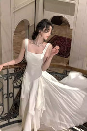 This chiffon A-line prom dress features a sophisticated square neckline and a flowing silhouette that flatters every figure. Crafted from lightweight chiffon, it offers graceful movement and comfort for evening events. Its elegant design makes it an ideal choice for formal occasions, combining timeless style with refined simplicity.