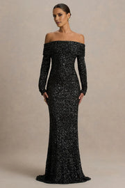 This dress features a dazzling mermaid silhouette with an off-shoulder design, long sleeves, and a zip-back that offer a striking and fashionable look. The floor-length cut adds a touch of elegance, making it perfect for evening events, ensuring you look stylish and confident.