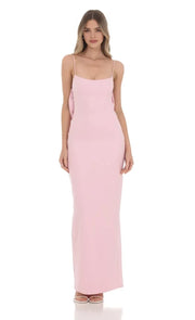 This delicate dress features a sheath silhouette, offering a sleek and body hugging look. The square neckline exudes classic charm, while the spaghetti straps add a touch of delicate elegance. The bow back detail brings a sweet and stylish element, and the floor length skirt creates a truly delicate and unforgettable style, perfect for evening events.