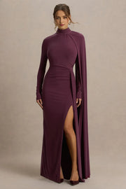 Dramatic Mermaid Mock Neck Cape Sleeve High Slit Floor Length Evening Dress - US 2 / UK 6 / EU 32