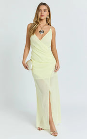This evening dress features a sheath silhouette that offers a sleek and figure-hugging fit. The plunge neck design brings a romantic and dreamy touch, while the sleeveless style provides a chic and effortless look. The tie-back accents add elements of alluring charm, enhancing the dress’s overall appeal. With a floor-length design, it’s ideal for evening events, ensuring the wearer looks dreamy and confident.