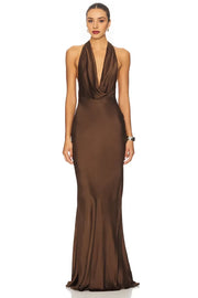 This dress features an elegant mermaid silhouette with a halter neck, sleeveless style, and a tie-back that offer a sophisticated and fashionable look. The floor-length cut adds a touch of elegance, making it perfect for evening events, ensuring you look stylish and confident.