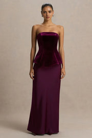 Elegant Peplum Strapless Sleeveless Zip Back Floor Length Evening Dress