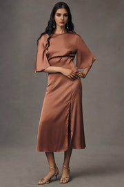Elegant Sheath Crew Neck Flutter Sleeve Open Back Midi Length Evening Dress