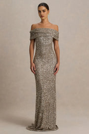 This dress features a glamorous mermaid silhouette with an off-shoulder design, short sleeves, and a zip-back that offer a sophisticated and eye-catching look. The floor-length cut adds a touch of elegance, making it perfect for evening events, ensuring you look stylish and confident.