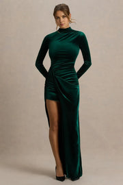 Gorgeous Mermaid Mock Neck Long Sleeve Ruched Side High Slit Floor Length Evening Dress - US 2 / UK 6 / EU 32