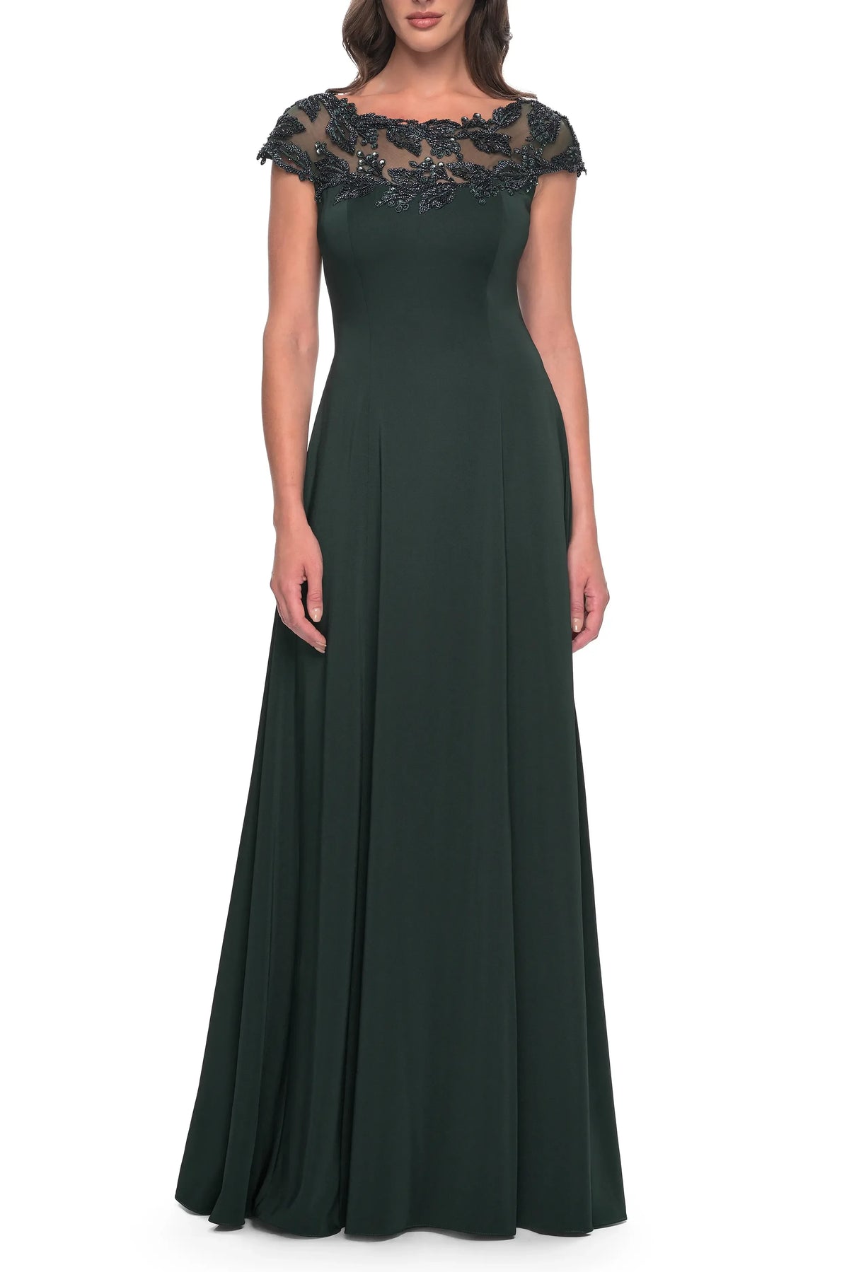 Graceful A Line Illusion Neck Cap Sleeve Zipper Back Floor Length Evening Dress