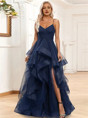 This elegant evening dress features delicate organza fabric with spaghetti straps and a princess silhouette that flatters every figure. The floor-length design and sleeveless cut offer timeless sophistication, while the ruched ruffles add texture and movement for a refined, graceful look perfect for formal occasions.