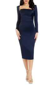 Polished Sheath Square Neck Long Sleeve Zipper Back Midi Evening Dress