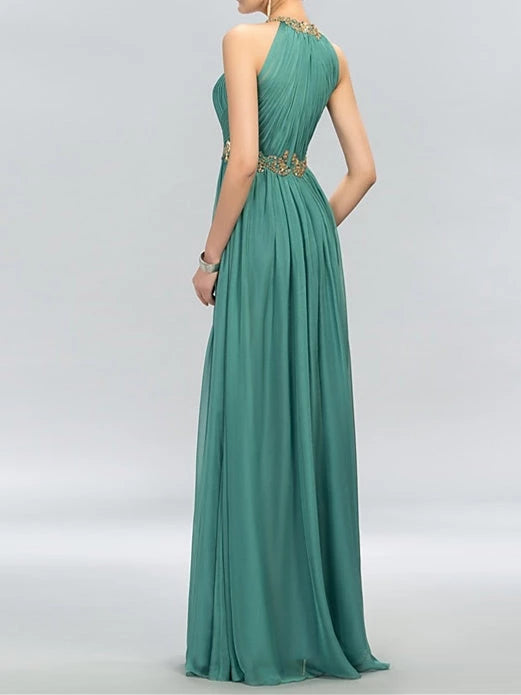 Princess Sleeveless Sleeveless Halter Neck Ruched Floor-Length Evening Dress Prom Dress - US 2 / UK 6 / EU 32
