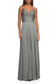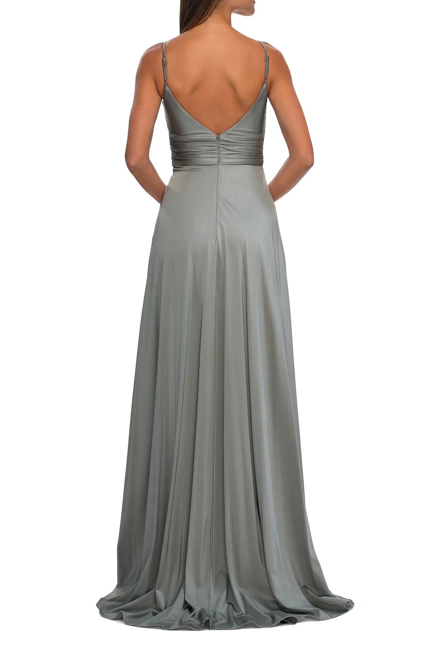 Radiant A Line Plunge Neck Sleeveless Open Back Floor Length Evening Dress - US 2 / UK 6 / EU 32