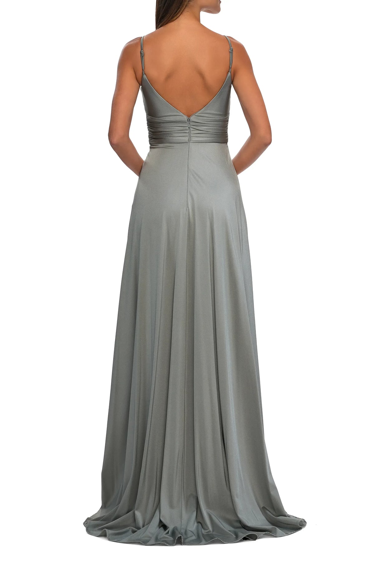 Radiant A Line Plunge Neck Sleeveless Open Back Floor Length Evening Dress