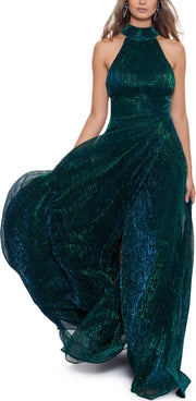 This radiant dress features a sheath silhouette, hugging the body gracefully for a glowing and captivating look. The high neck design adds a touch of sophisticated charm. With a sleeveless cut, it keeps you cool and stylish. The zipper back detail ensures a secure and seamless fit, and the floor length skirt, with its shimmering fabric, makes for a truly radiant and unforgettable appearance, perfect for evening events.