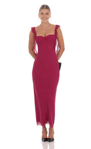 This romantic dress features a sheath silhouette, offering a sleek and body hugging look. The sweetheart neckline exudes charming allure, while the ruffled straps add a touch of delicate elegance. The open back detail brings a stylish and alluring element, and the floor length skirt creates a truly romantic and unforgettable style, perfect for evening events.