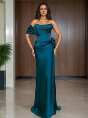 Sheath Ankle Length Long Sleeve V Neck Chiffon with Ruched Ruffles Evening Dresses Prom Dress