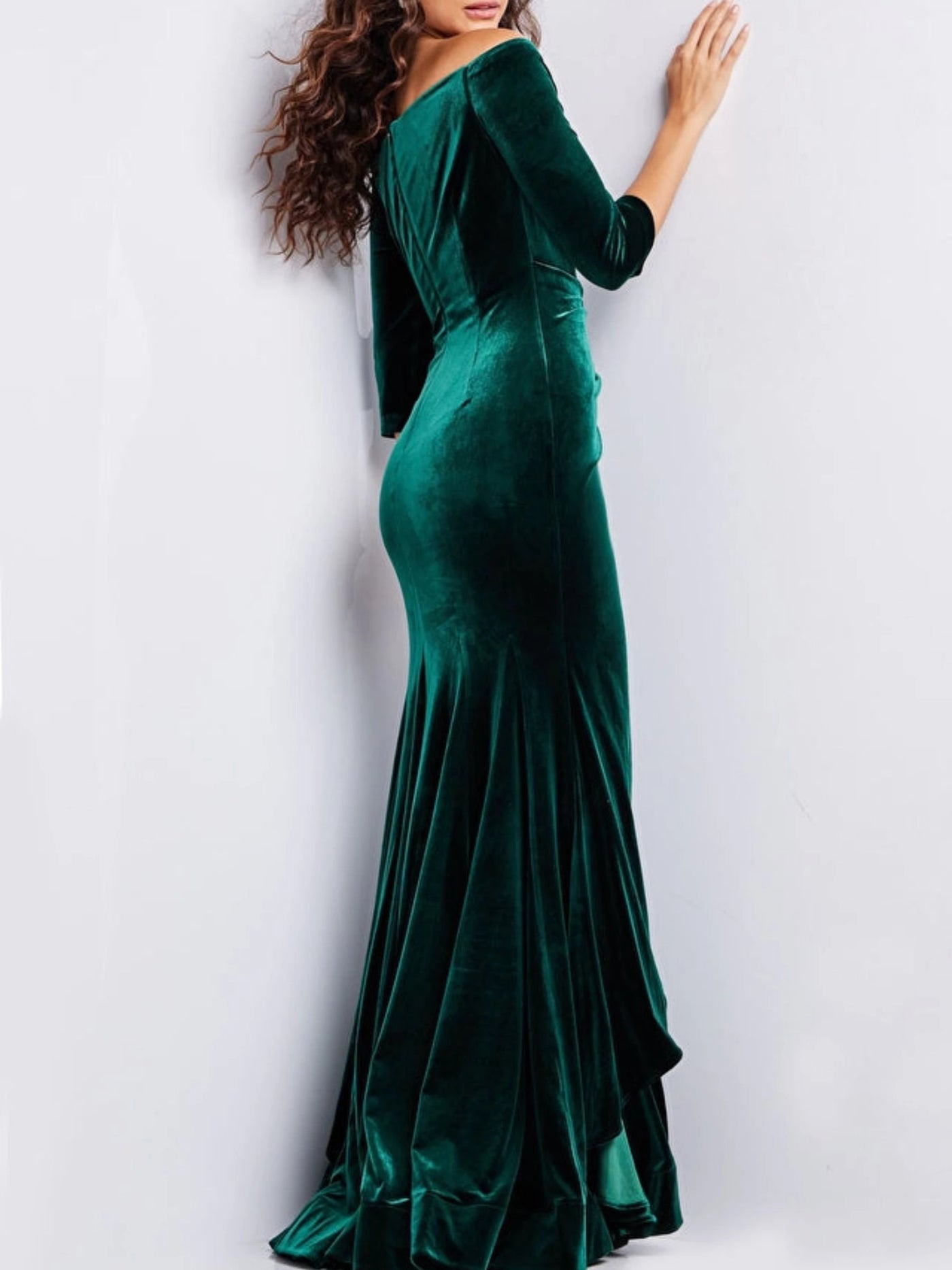 Sheath Off-the-Shoulder Long Sleeves Floor-length With Ruffle Evening Dresses Prom Dresses